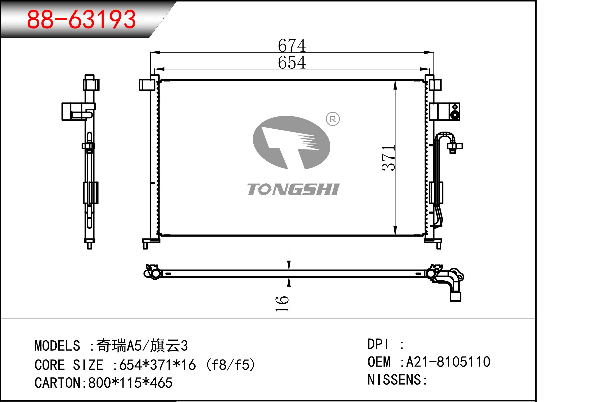 适用于奇瑞瑞虎(新款)?MT散热器
