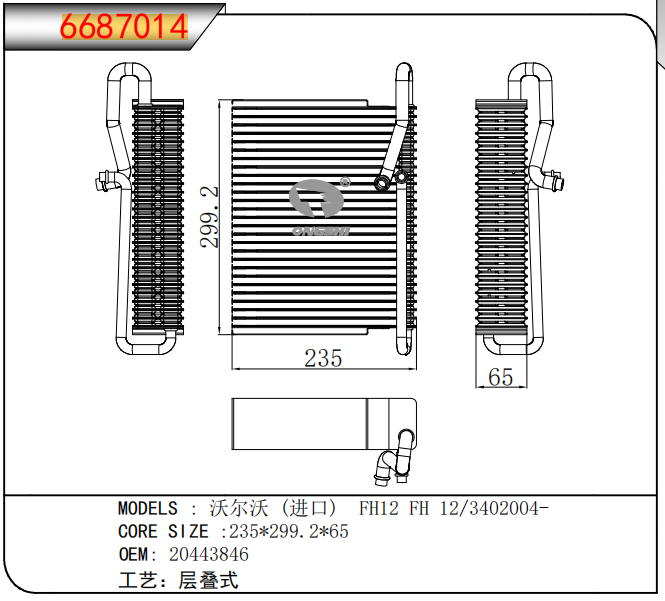 适用于沃尔沃V40 1.9TD D4192T 95- MT散热器