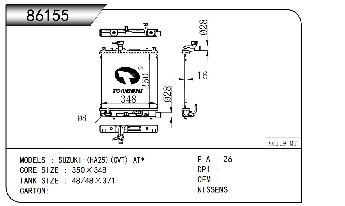 适用于奇瑞瑞虎(新款)?MT散热器