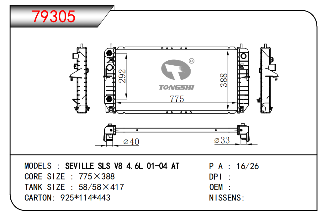 适用于沃尔沃V40 1.9TD D4192T 95- MT散热器