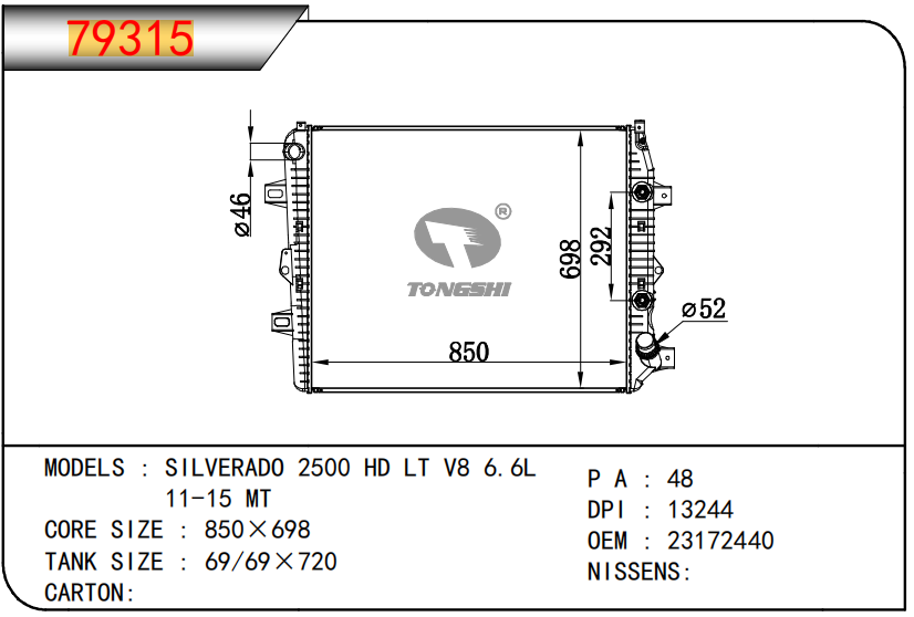 适用于FREIGHTLINER CASCADIA 125/ 113 L6 12.8L 12-13 AT散热器