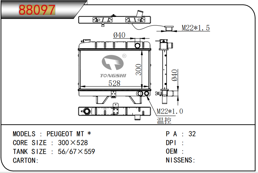 适用于沃尔沃V40 1.9TD D4192T 95- MT散热器