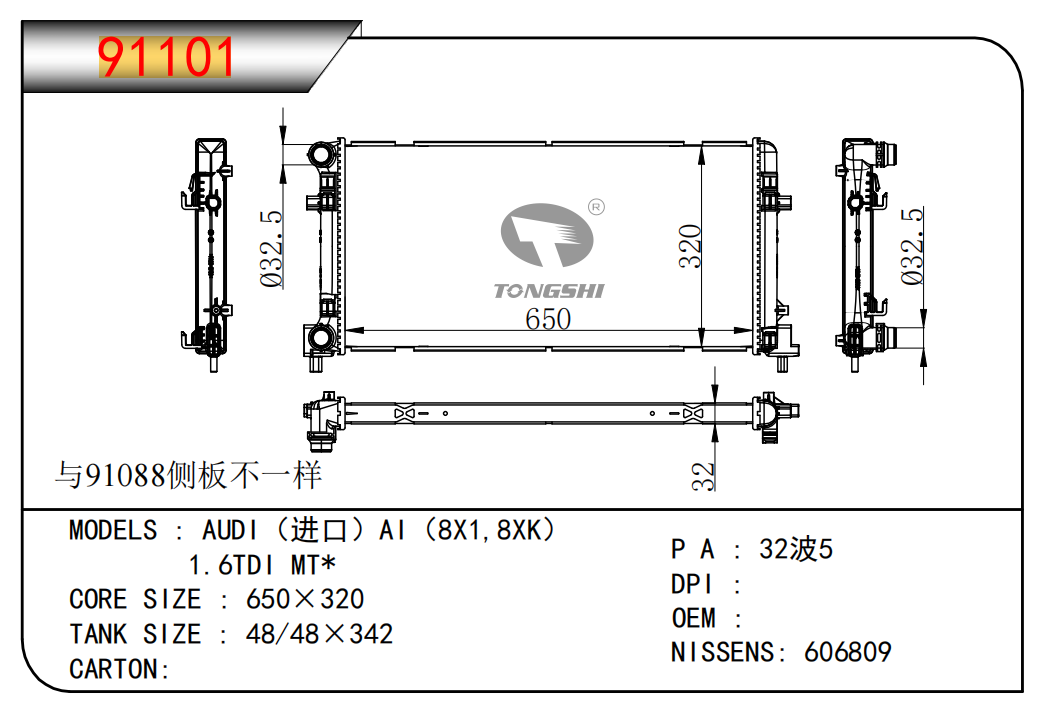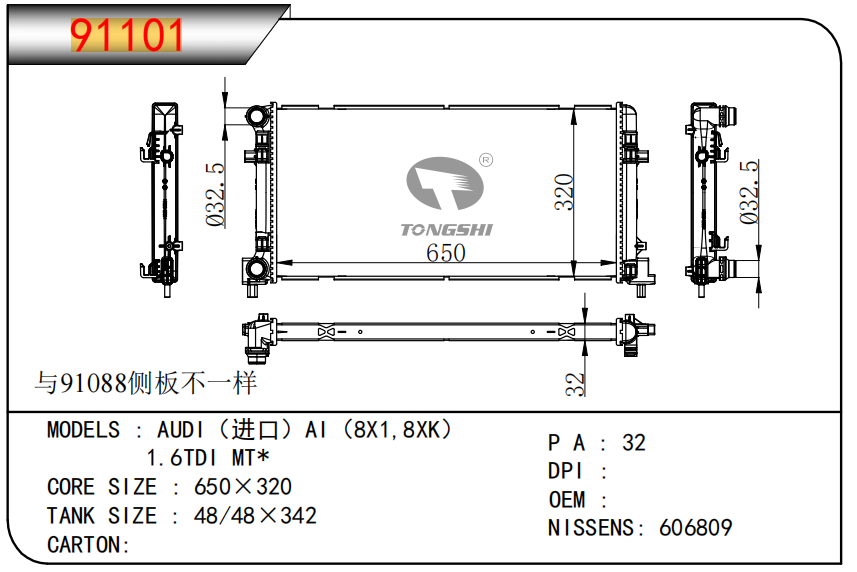 适用于宝马E30 320 i 82-93 AT散热器
