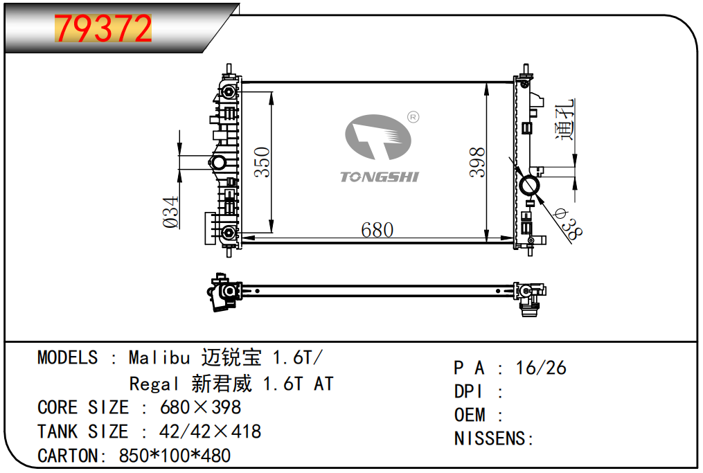 适用于宝马E30 320 i 82-93 AT散热器