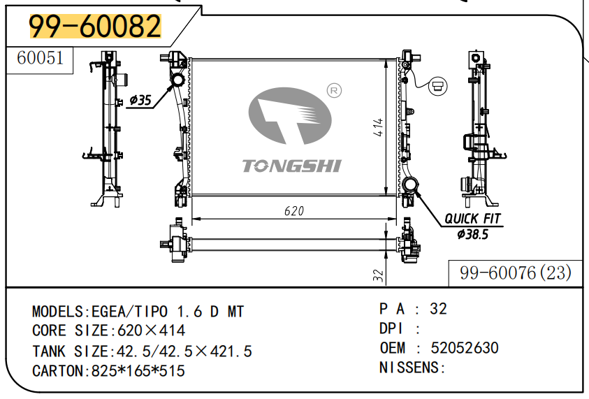 适用于沃尔沃V40 1.9TD D4192T 95- MT散热器