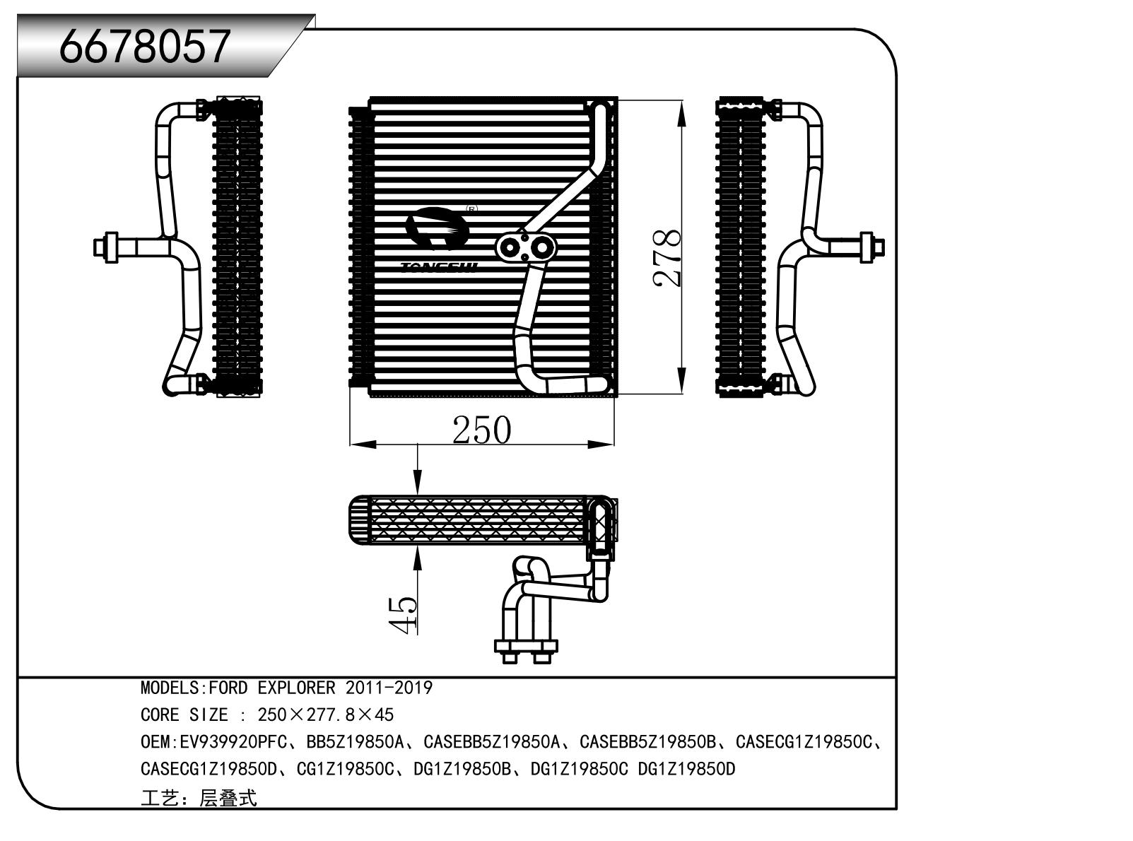 适用于 福特探险者 2011-2019 蒸发器