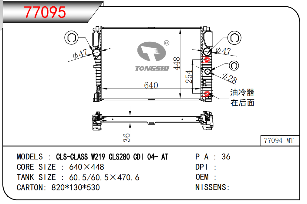 适用于宝马E30 320 i 82-93 AT散热器