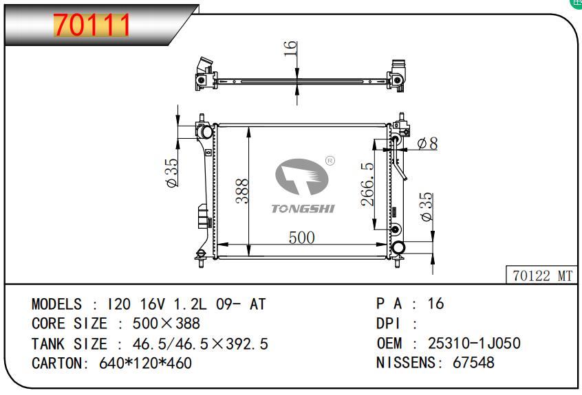 适用于奇瑞瑞虎(新款)?MT散热器