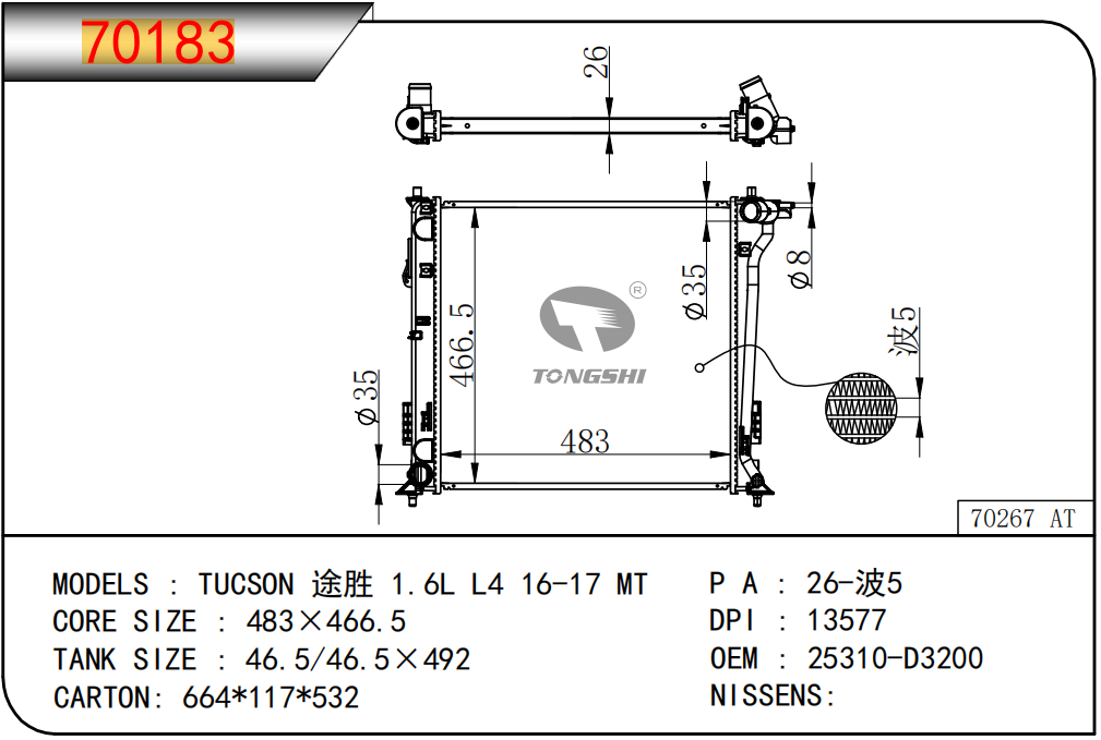 适用于奇瑞瑞虎(新款)?MT散热器