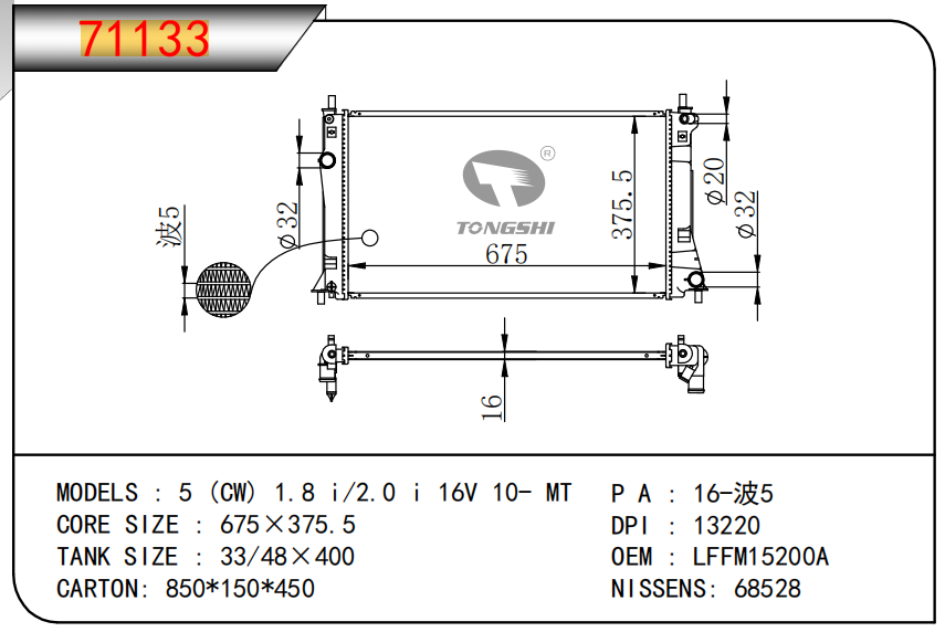 适用于宝马E30 320 i 82-93 AT散热器