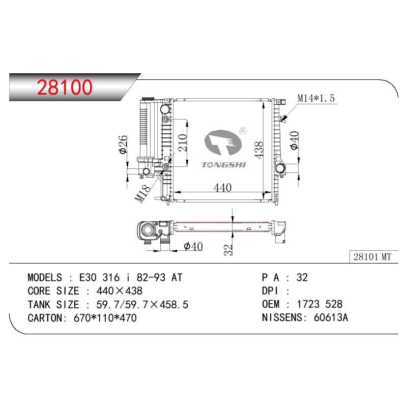 适用于宝马?E30?316?I散热器 ?OEM:1719136/1719264/1723528/1723898/17111719136/17111719264/17111723528/17111723898/1723?528