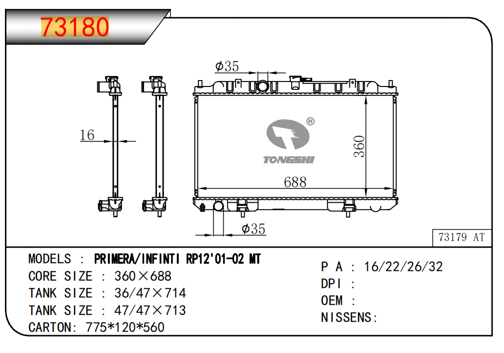 适用于沃尔沃V40 1.9TD D4192T 95- MT散热器