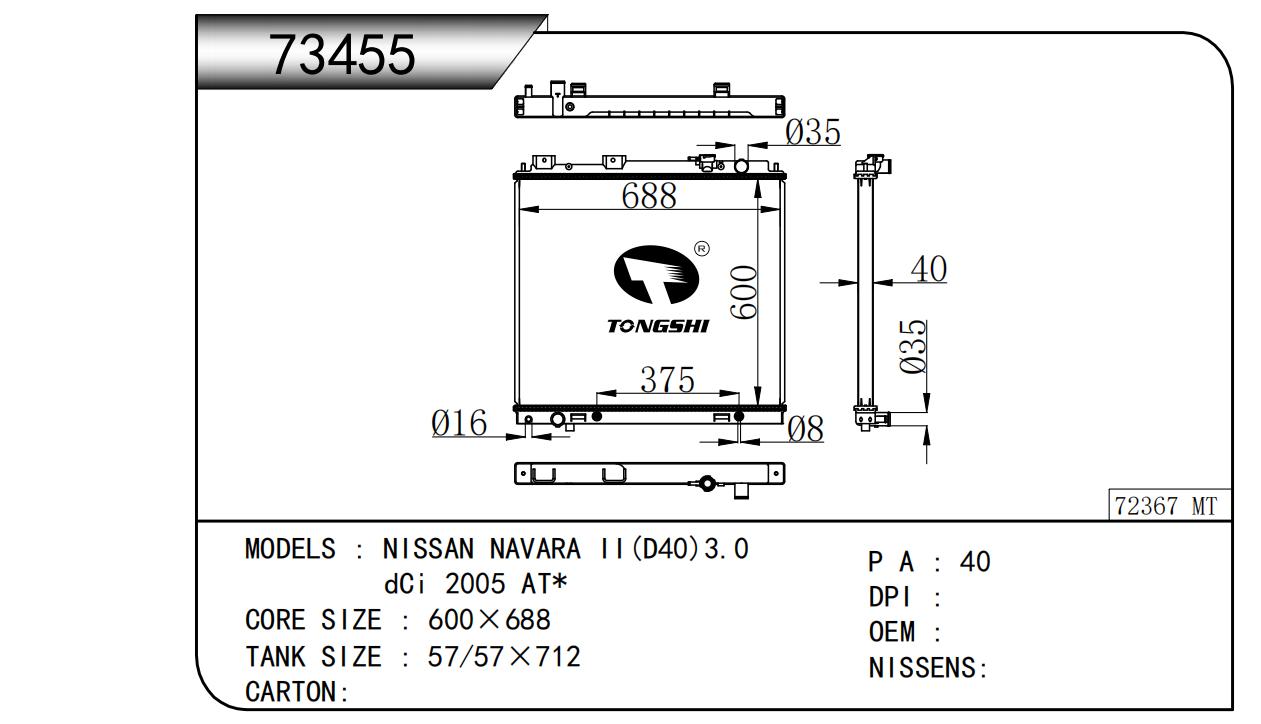 适用于沃尔沃V40 1.9TD D4192T 95- MT散热器