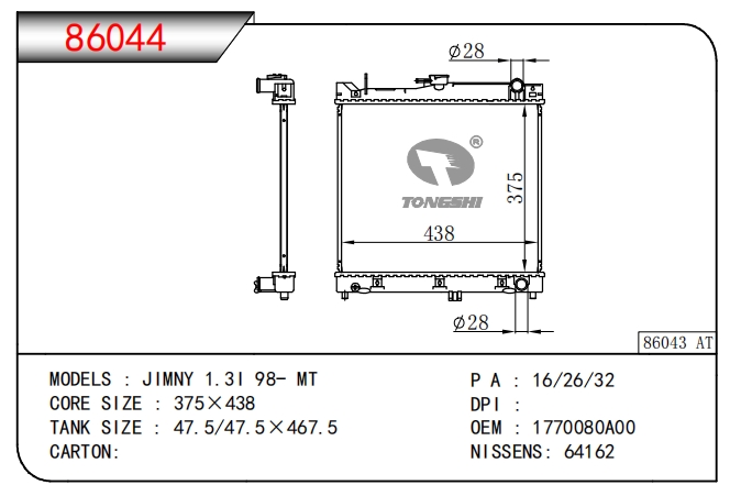 适用于奇瑞瑞虎(新款)?MT散热器
