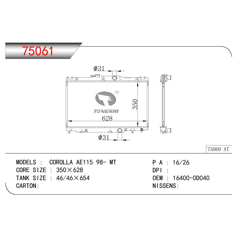 适用于TOYOTA COROLLA AE115 OEM:16400-0D030/16400-0D040/16400-0D050/16400-0D070/164000D030/164000D040/164000D050/164000D070