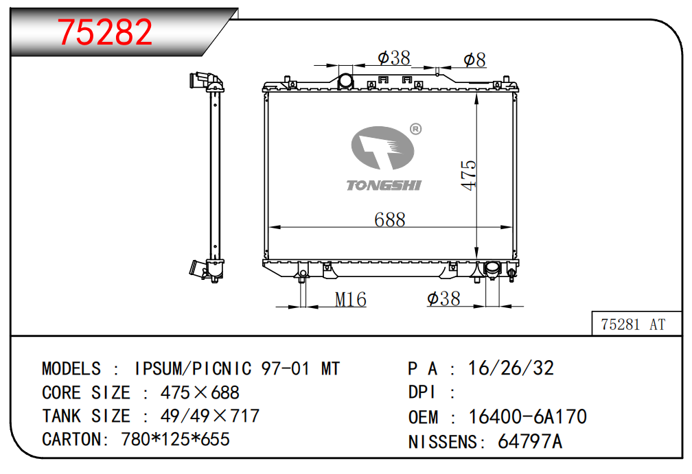 适用于沃尔沃V40 1.9TD D4192T 95- MT散热器