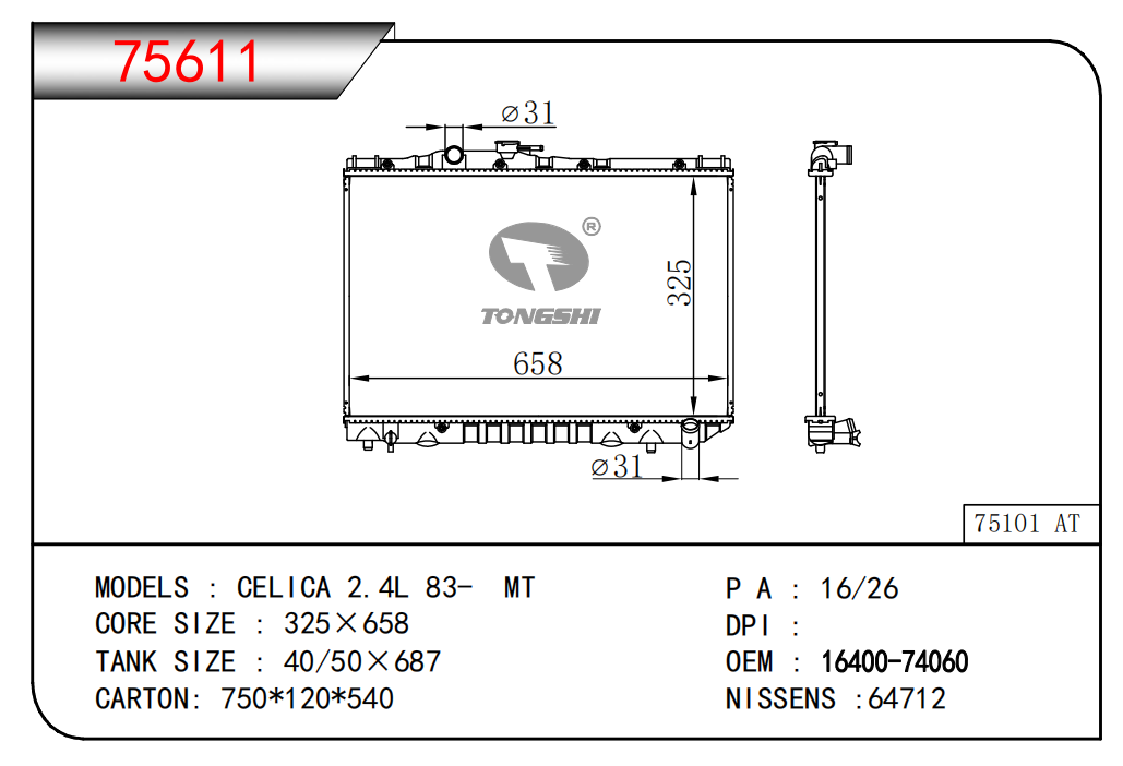 适用于宝马E30 320 i 82-93 AT散热器