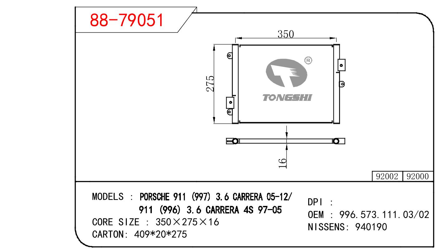 适用于保时捷 911(997)3.6 CARRERA 05-12/911(996)3.6 CARRERA 4S 97-05 冷凝器 OEM : 996.573.111.03