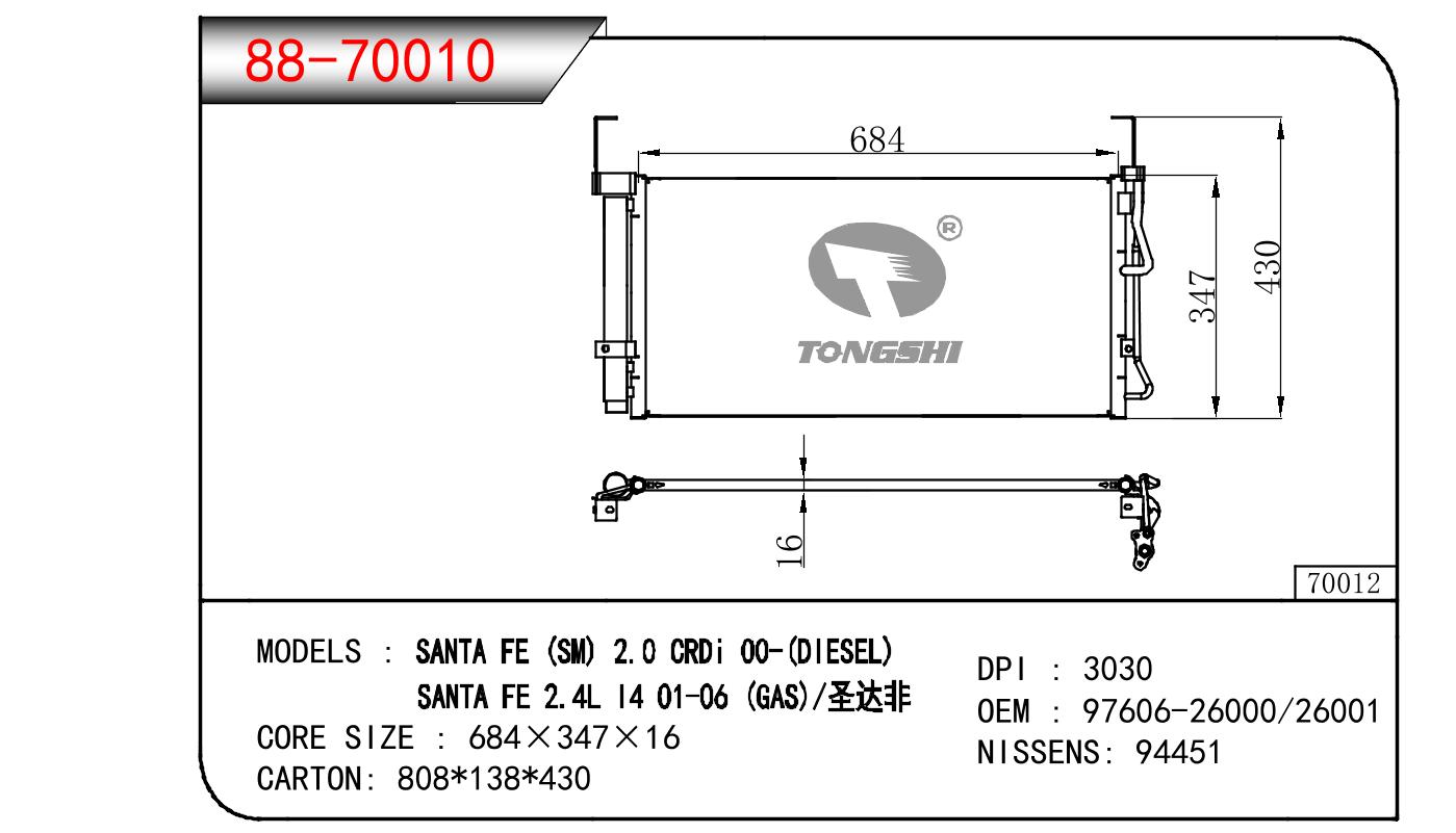 适用于现代圣菲亚(SM) 2.0 CRDI 00-(DIESEL)/圣菲亚 2.4L I4 01-06 (GAS) 冷凝器 OEM : 97606-26000/2