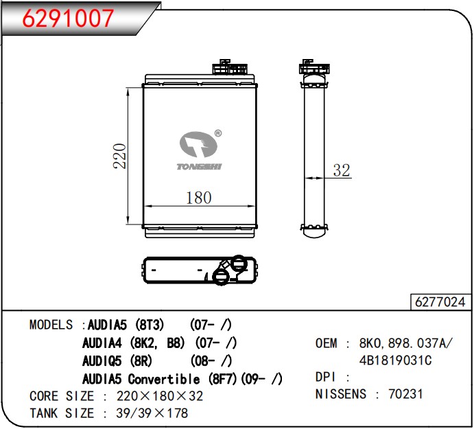 适用于奥迪?A5?(BT3)?(07-/)奥迪?A4?(8K2?B8)(?07-/)奥迪?Q5?(8R)?(08-/)奥迪A5?CONVERTIBKLE?(8F7)?(09-/)暖风