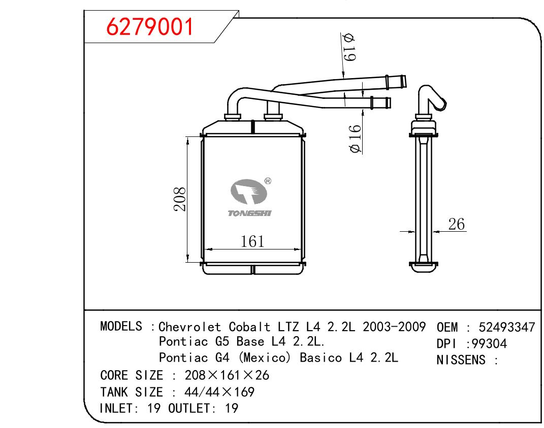 • Chevrolet Cobalt LTZ L4 2.2L 2003-2009/Pontiac G5 Base L4 2.2L/Pontiac G4 (Mexico) Basico L4 2.2L