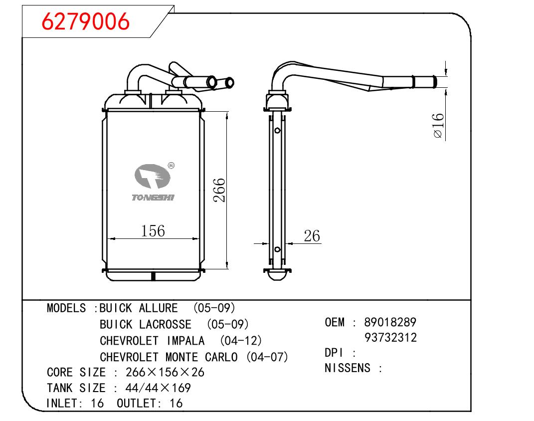 适用于GM DODGE BUICK ALLURE 05-09/BUICK LACROSSE 05-09/CHEVROLET IMPALA 04-12/CHEVROLET MONTE CARLO 04-07 OEM:890118289/93732312