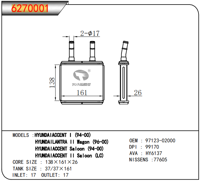 • 芯体尺寸:138*161*26