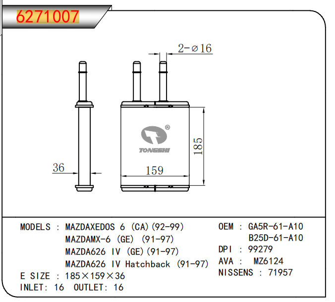 适用于马自达XEDOS?6?(CA)(92-99)/MX-6?(GE)?(91-97)/626?IV?(GE)(91-97)/626?IV?Hatchback?(91-97)暖风