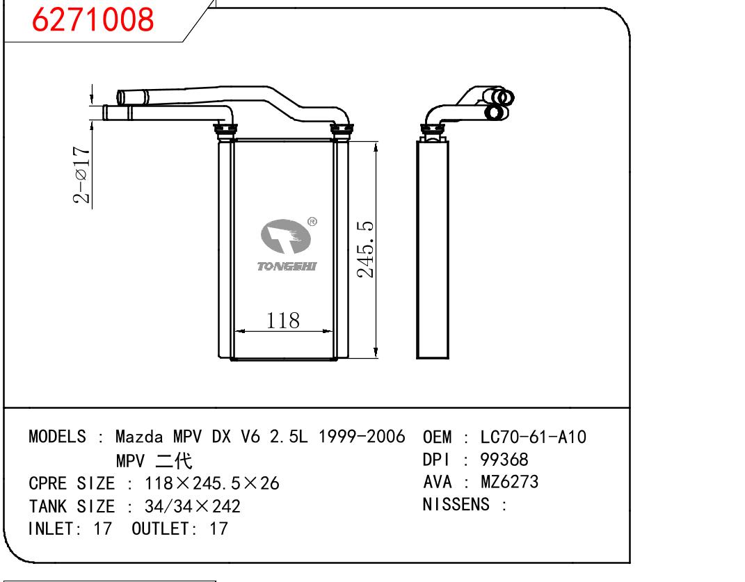 适用于沃尔沃V40 1.9TD D4192T 95- MT散热器