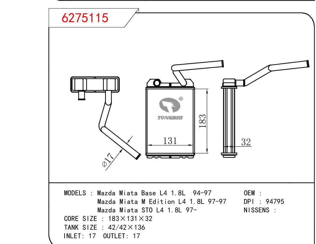 • 芯体尺寸:183*131*32
