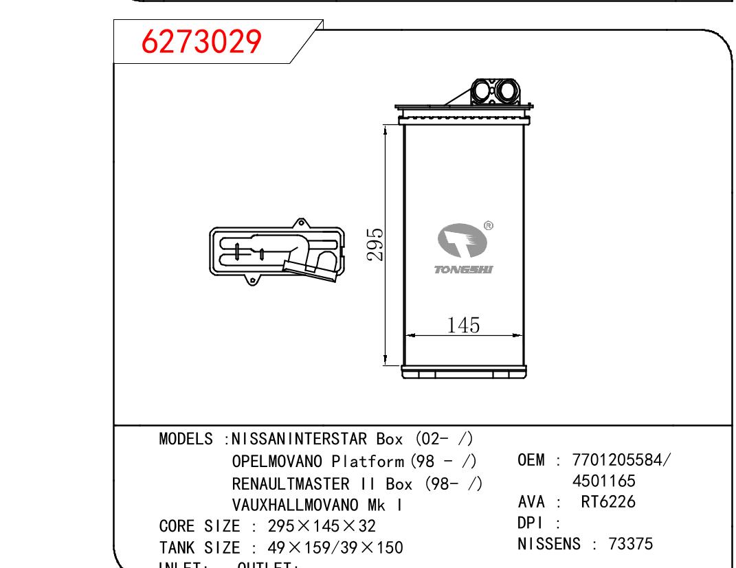 • 芯体尺寸:295*145*32