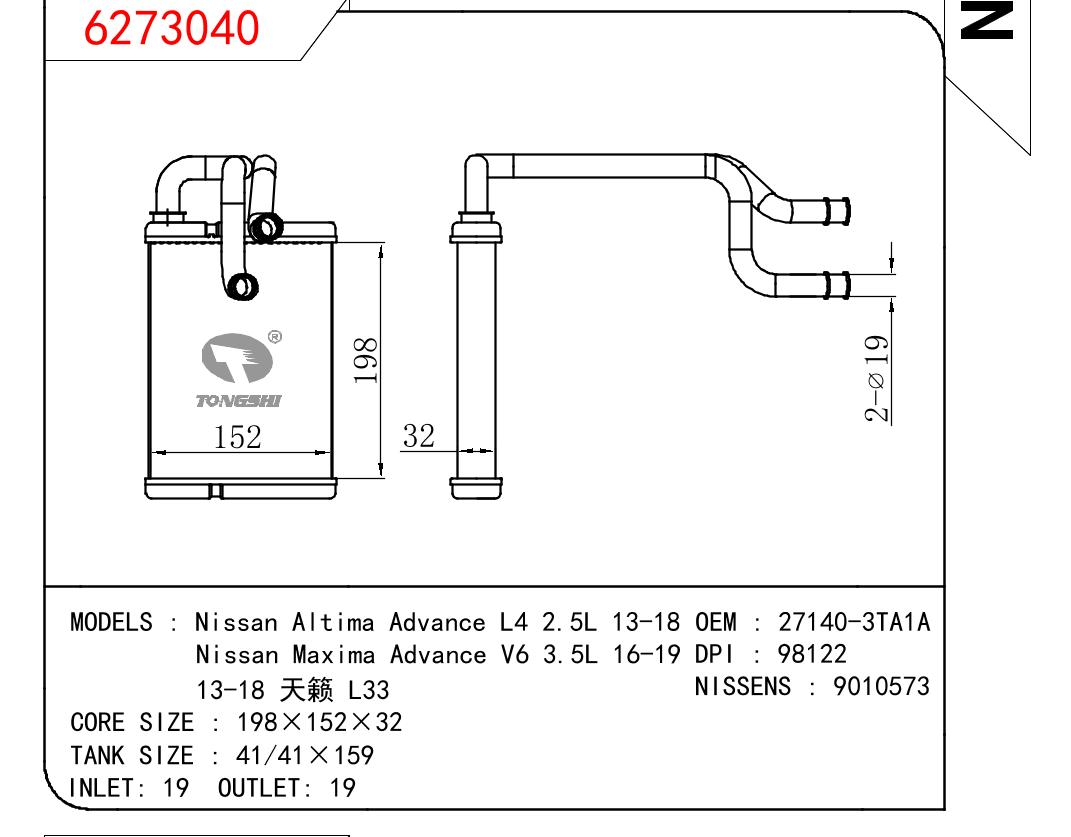 • Nissan Altima Advance L4 2.5L 13-18/Nissan Maxima Advance V6 3.5L 16-19/13-18 天籁 L33