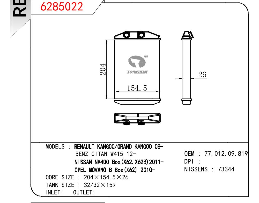 适用于RENAULT?RENAULT?KANGOO/GRAND?KANGOO?08-/BENZ?CITAN?W415?12-/NISSAN?NV400?BOX?(X62.X62B)2011-/OPEL?MOVANO?B?BOX?(X62)2010-?OEM:7701209819