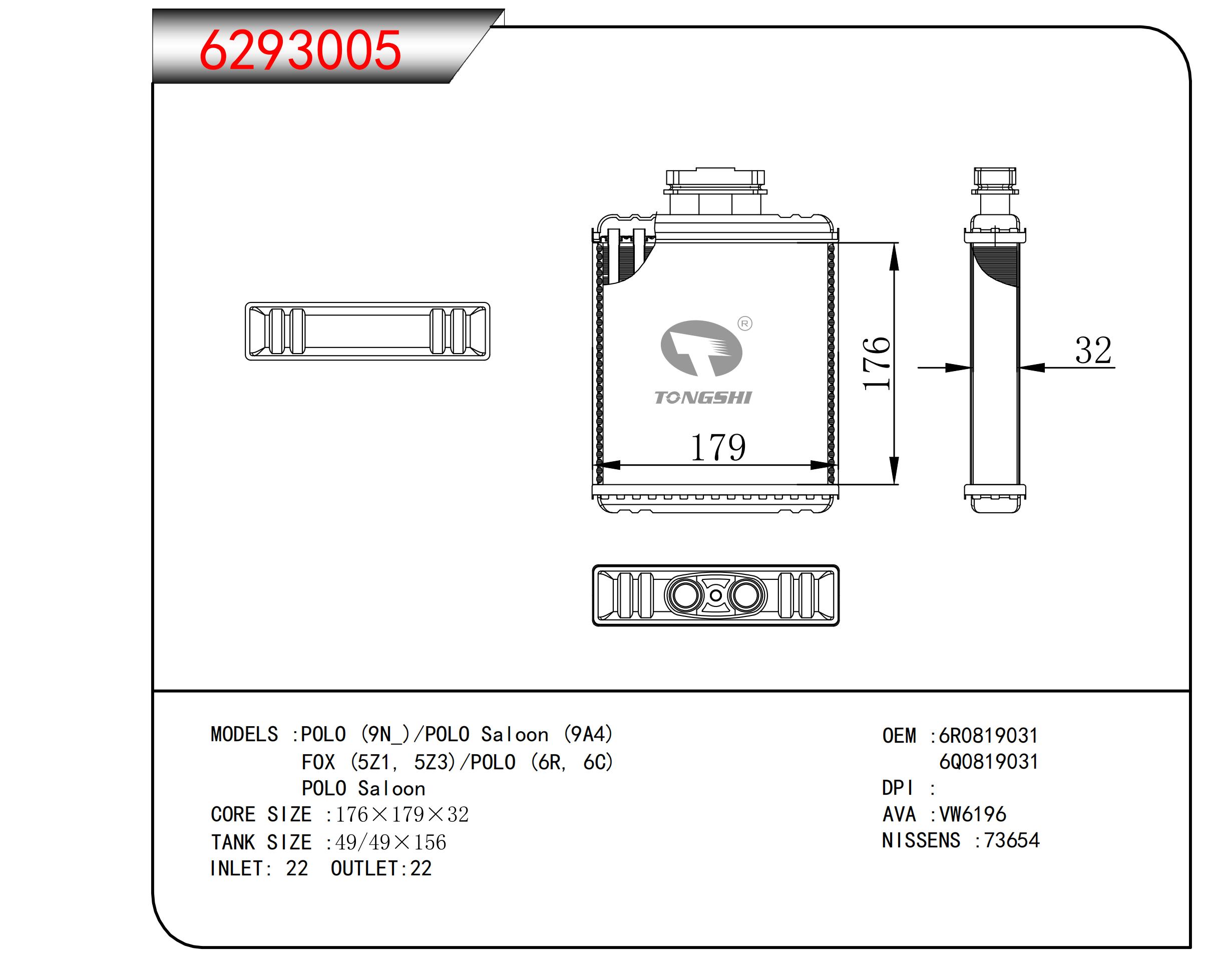 • POLO (9N_)/POLO Saloon (9A4) FOX (5Z1, 5Z3)/POLO (6R, 6C) POLO Saloon
