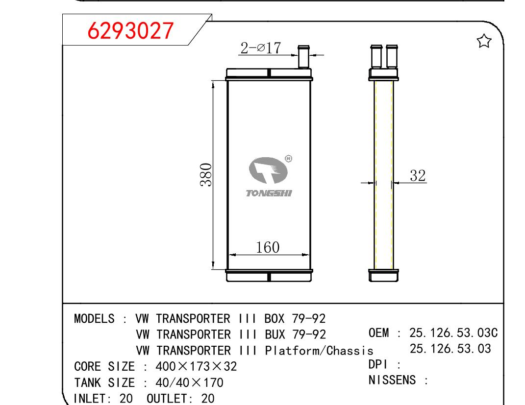 • 芯体尺寸:400*173*32