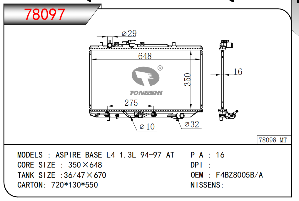 适用于宝马E30 320 i 82-93 AT散热器