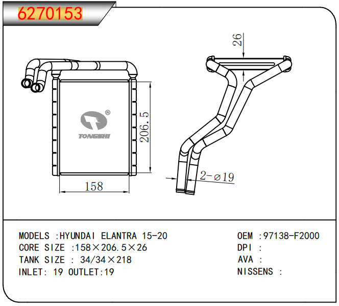 适用于沃尔沃V40 1.9TD D4192T 95- MT散热器