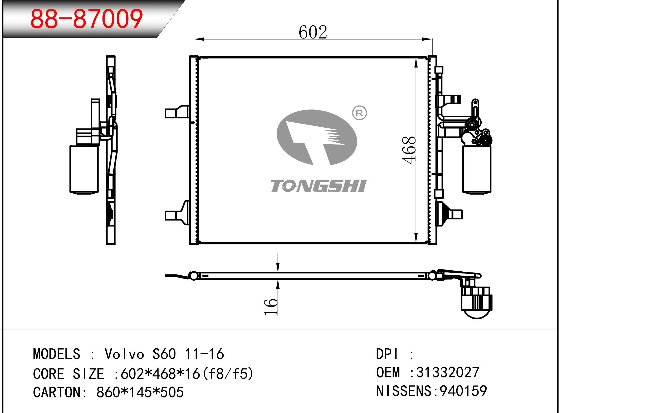 适用于沃尔沃V40 1.9TD D4192T 95- MT散热器