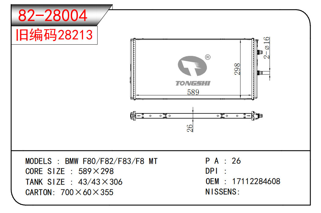 适用于宝马E30 320 i 82-93 AT散热器