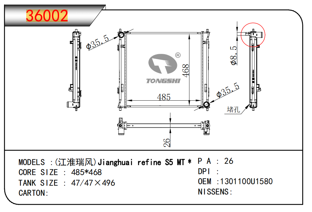 适用于奇瑞瑞虎(新款)?MT散热器