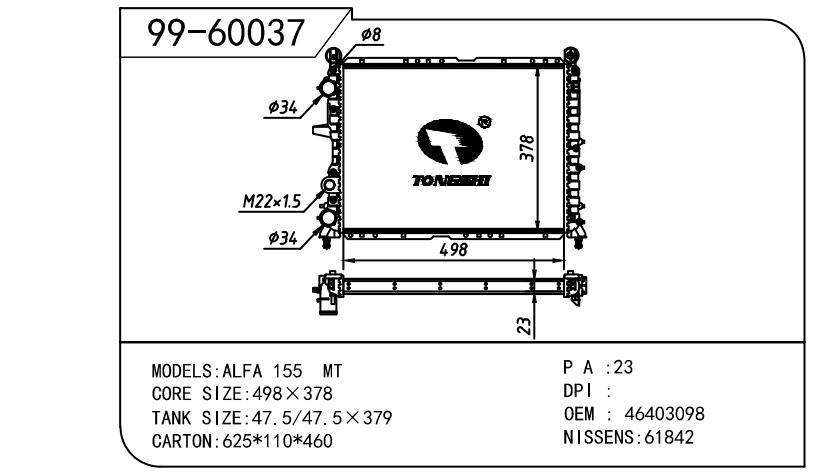 • OEM:46403098,71735363,7612178,7621178,7641779,7655948,71735364,7658208,7775153,7788718,60811291,7655348