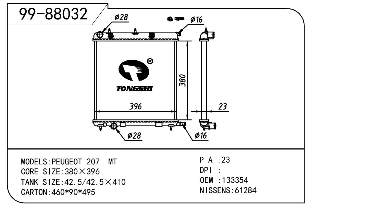 适用于PEUGEOT 标致 标致 207 OEM:133354/1330.C2/1331TV/1330.S1/1330.W8/1330C0/1330Z3/1331TS/1333.65/1333.95/9638520280/9674608380/E101K19/1330.J2/1330.N6/1330.Q0/1301M6