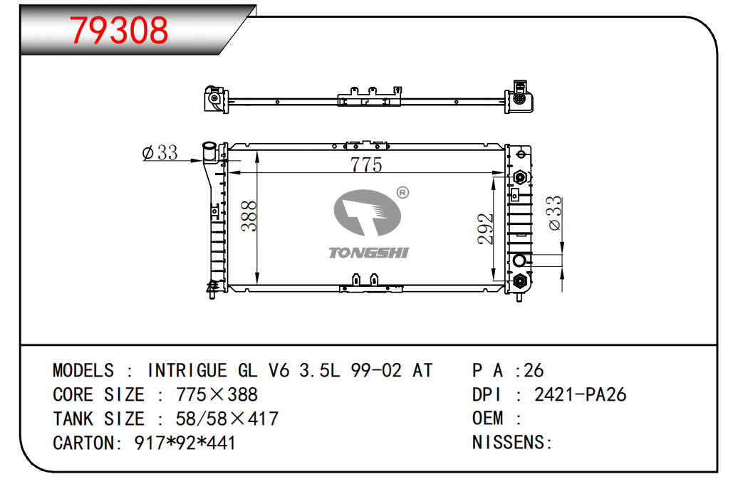 适用于宝马E30 320 i 82-93 AT散热器