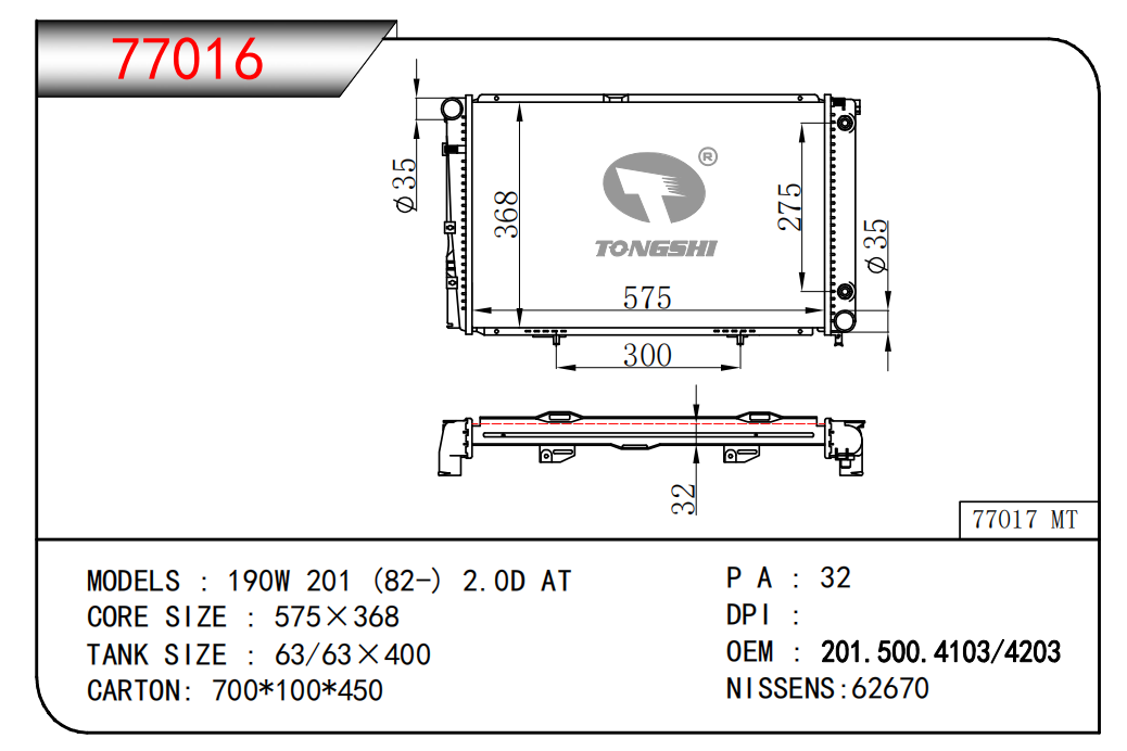 适用于宝马E30 320 i 82-93 AT散热器