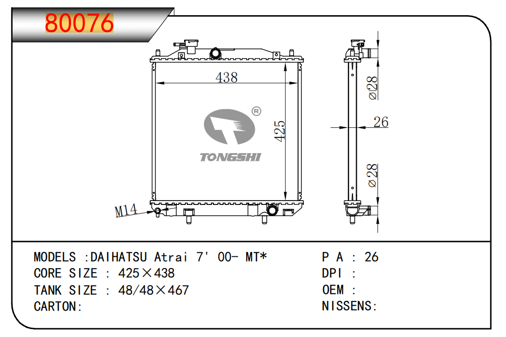 适用于沃尔沃V40 1.9TD D4192T 95- MT散热器